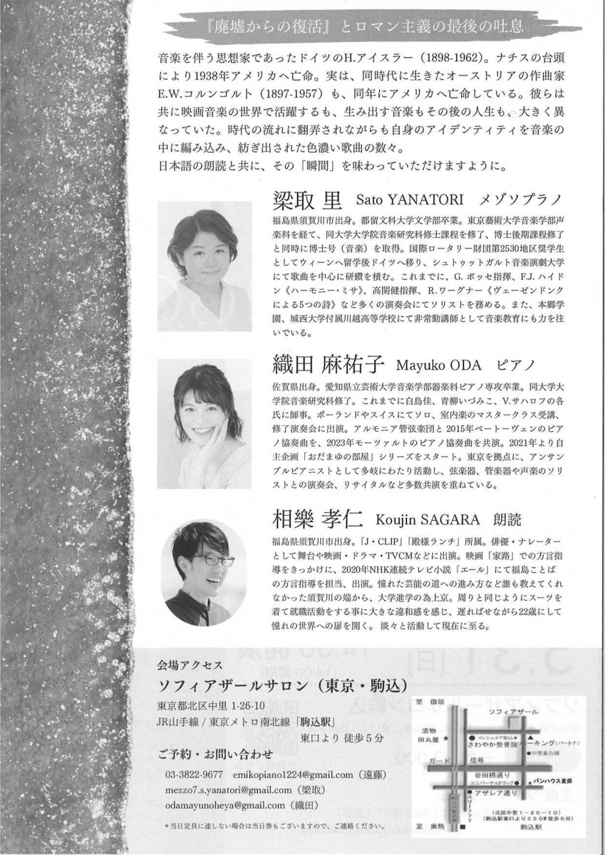 本校音楽講師の梁取里先生による公演会が、5月31日に開催されます。