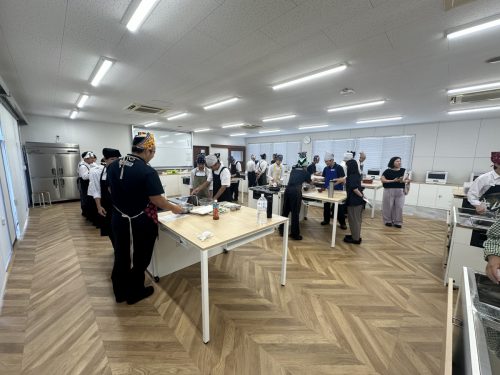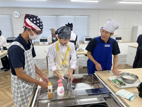 リニューアルされた家庭科室で調理実習がはじまりました。